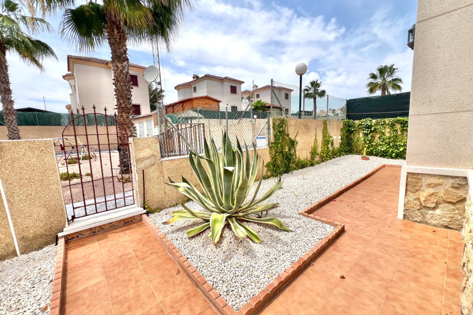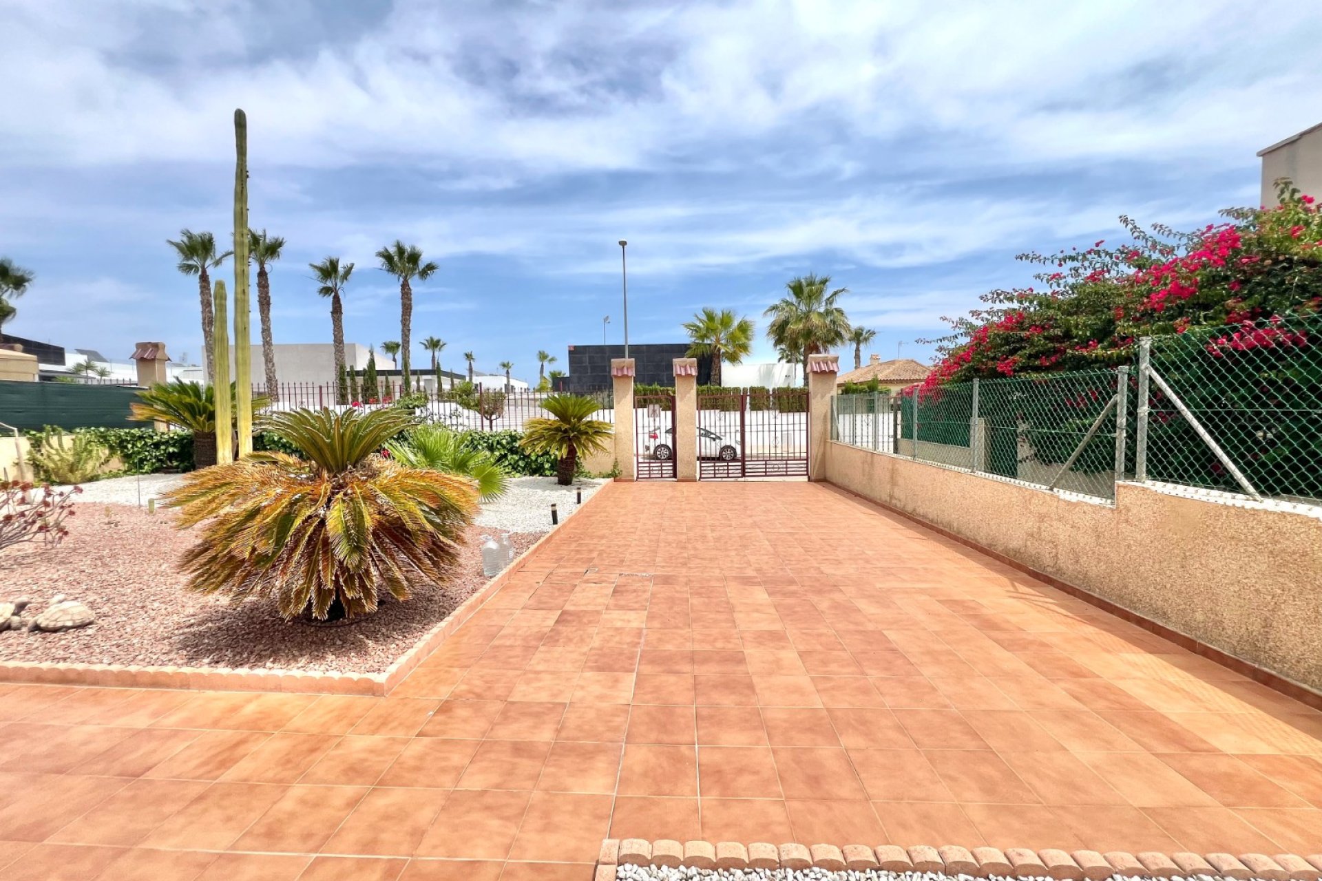 Ubicada en una espaciosa parcela con orientación oeste y amplio espacio para instalar su propia piscina privada (si lo desea). La villa está rodeada de jardines de fácil mantenimiento, completamente embaldosados y adornados con palmeras, con elegantes acabados en Gota Gran. Un camino de entrada embaldosado ofrece aparcamiento seguro fuera de la carretera, y una encantadora terraza delantera invita a relajarse y disfrutar del sol de la tarde.