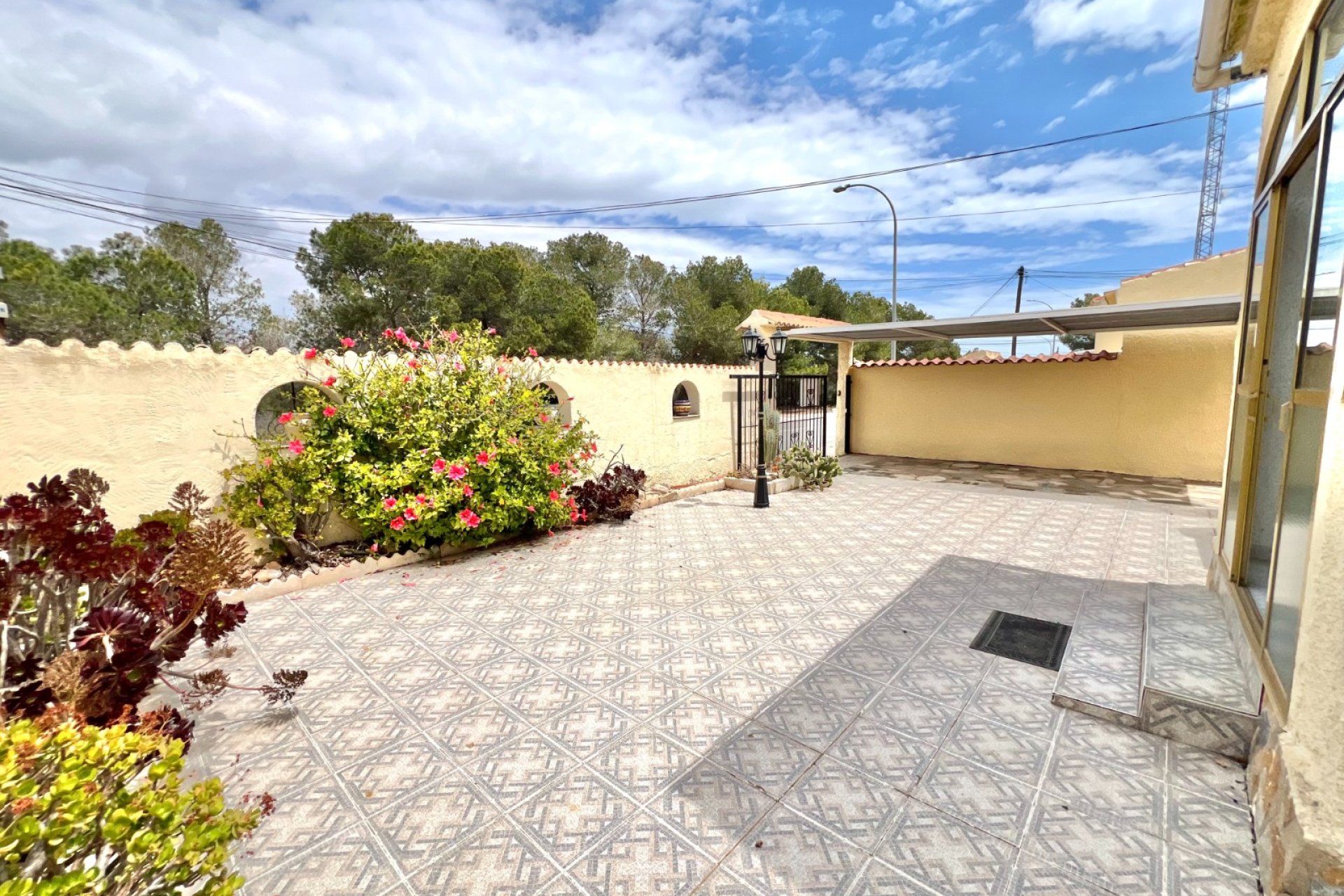 Nicky’s Properties are proud to present for sale this beautifully extended detached “Lola” property, located in a quiet yet well connected area of Urbanisation La Marina. Positioned directly opposite a peaceful forest and just a short walk from a selection of local amenities, including shops, bars and restaurants, the home offers both tranquillity and convenience. The airport of Alicante-El Altet is located only a 25 minute drive away and the beaches of La Marina and El Pinet are located just 5km away.